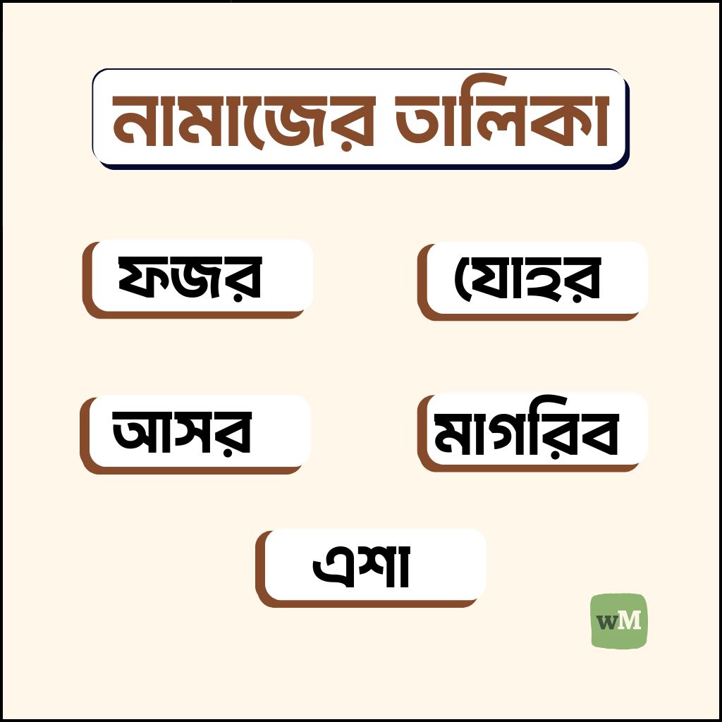 পাঁচ ওয়াক্ত নামাজের তালিকা